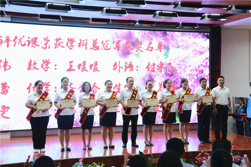 大会上首先公布了在上一学年中荣获“教师基本功大赛” “我要发展评优课学科总冠军”“年度优秀教师”等奖项的奖名单。校领导为他们颁发了荣誉证书与奖杯。这些荣誉是对勤奋努力工作的教师一种莫大的鼓励,点燃了全体教师心中的热情,激发了他们为德才高中的发展与教育事业奋斗的动力。